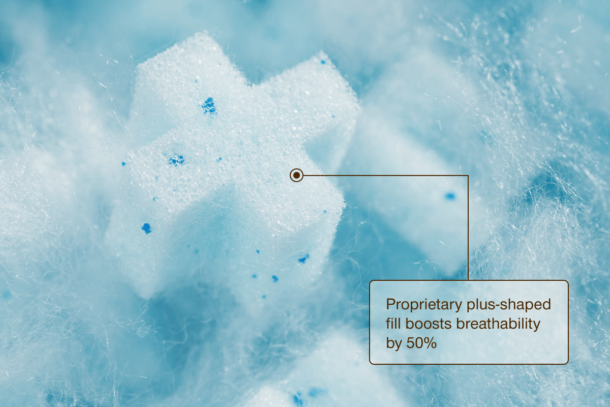 Plus-shaped memory foam provides and allows for 50% more airflow.